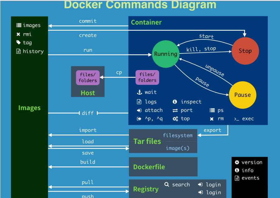然后通过Socket连接从客户端访问,守护进程从客户端接受命令并管理运行在主机上的容器。