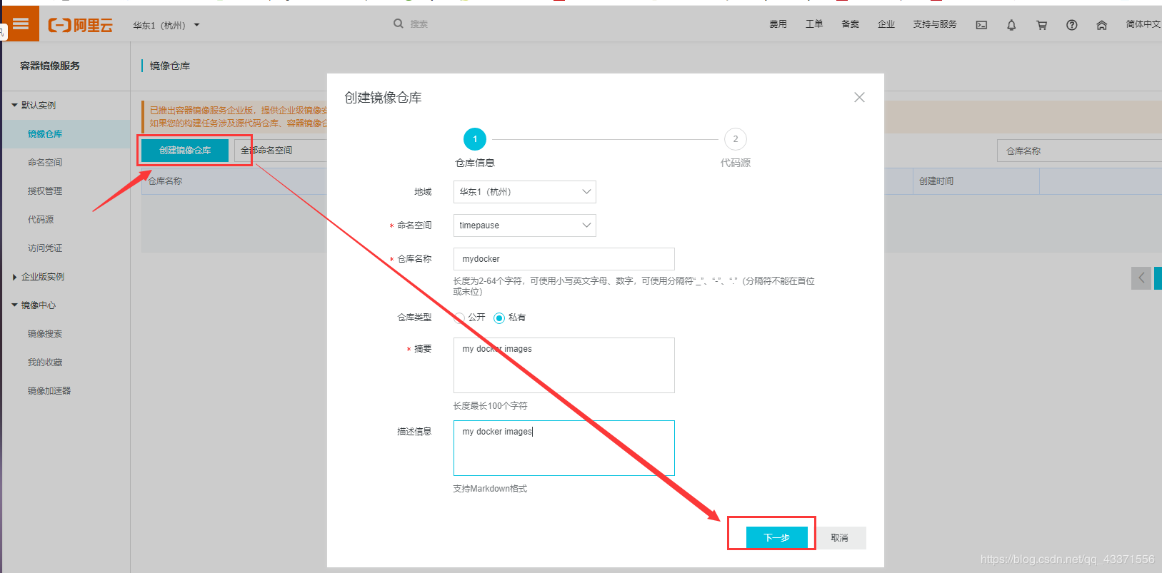 # 2. 创建镜像仓库(图1)