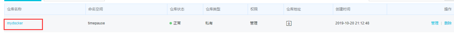 docker tag [ImageId] registry.cn-hangzhou.aliyuncs.com/timepause/mydocker:[镜像版本号]