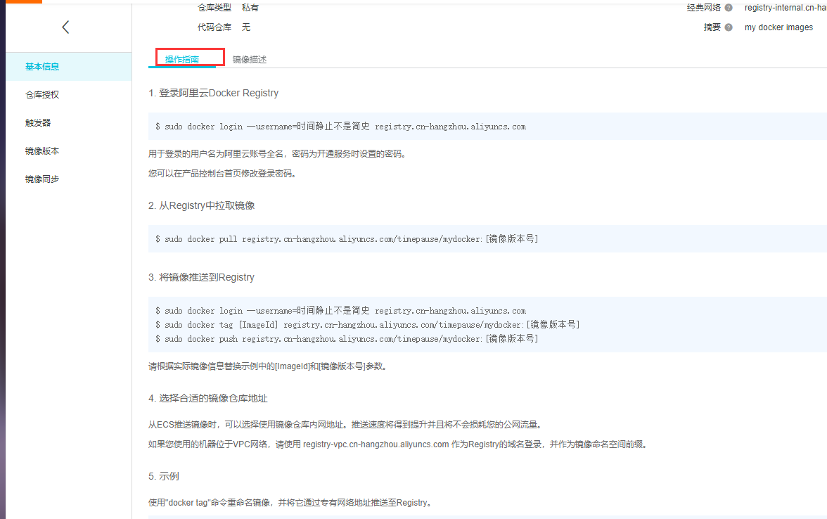 # 4.将镜像推送到阿里云的镜像仓库(最好是根据阿里云上的操作指南)