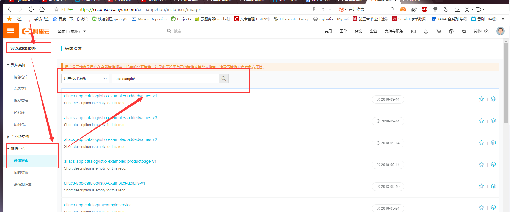 https://cr.console.aliyun.com/cn-hangzhou/instances/repositories