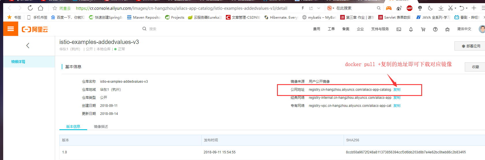 docker pull 复制的镜像地址 |