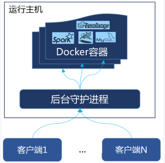 Docker是一个Client-Server结构的系统,Docker守护进程运行在主机上,