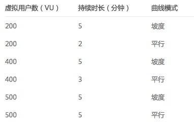 既然是容量探测,所以整体的施压过程是一个梯度渐进的过程,一般不会上来就是一条直线。这是一直和用户强调的问题,压测的目的绝对不是把系统压垮,压测的目的是通过不断增加的并发来客观评估系统在不同的压力条件下的性能状况;基于此我们定制了施压的梯度压力模式,如图所示: