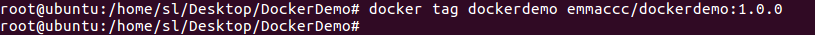 使用命令 docker tag dockerdemo emmaccc/dockerdemo:1.0.0