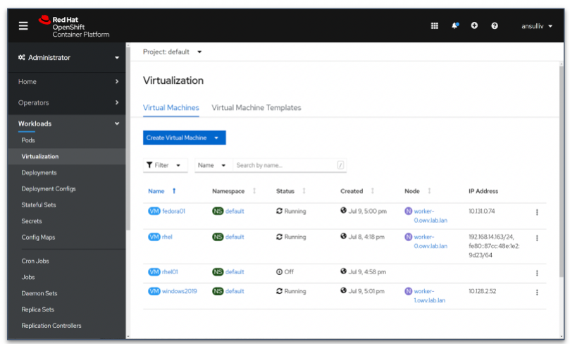 4.5中以组件名称“OpenShift虚拟化”作为生产就绪型附加功能正式推出,当时版本为2.4,现在在OpenShift