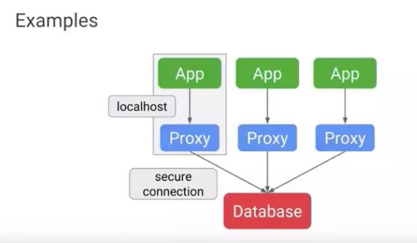 常见情况是你需要运行进程依赖的一个代理或者监视器,比如你的进程依赖一个数据库, 而你不希望把数据库的密码硬编码进每个容器里面,这个时会你可以把密码放到一个代理程序里面当作sidecar,由它来管理数据库连接: