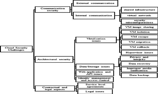 云的外部通信(客户与云之间)与Internet上的任何其他通信相似。因此,由于互联网特性,云所面临的挑战与传统的IT通信相同。这些挑战包括拒绝服务、中间人、窃听、基于IP欺骗的洪水和伪装。这些挑战的解决方案也与常规采用的解决方案相同,例如安全套接字层(SSL)、互联网安全协议(IPSec)、加密算法、入侵检测和防御系统、流量清理和数字证书。