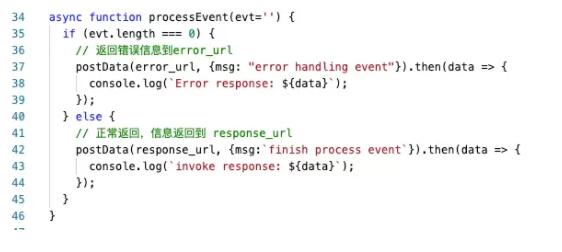 函数处理 event 之后, 如正常返回,通过 POST SCF_RUNTIME_API:SCF_RUNTIME_API_PORT/runtime/invocation/response 传递返回信息给 SCF 服务。