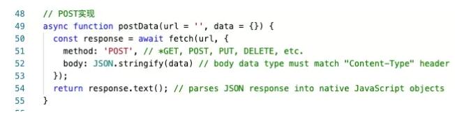 分别处理正常返回和错误返回。最后再来看一下我们是怎么封装这里的 postData() 函数的: