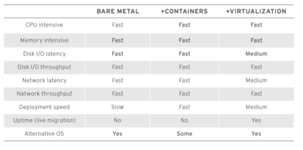在HPC环境中,可以将容器添加到裸金属来提供相似的性能水平,同时提高隔离水平。另一方面,如果工作负载是一个需要在Windows和Linux中使用组件的企业级应用程序,则组合容器和虚拟化可能是一个更好的选择。在虚拟机中运行容器提供了硬件自由、更好的隔离和使用容器镜像提高可管理性的组合。