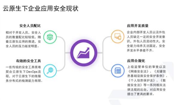 第三,有效的安全工具问题。当前多数企业缺少一整套有效的安全工具,以往基于传统应用使用的安全工具很难契合云原生下的DevOps流程,对云原生下的微服务、分布式等新型框架的检测能力有限。