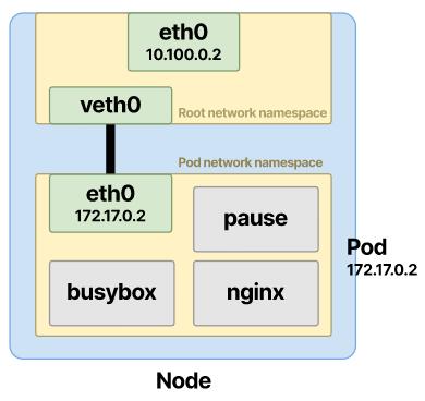 在示例中,有一个带有 nginx 和 busybox 容器的 Pod: