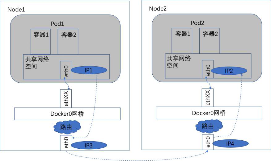 每一个Pod都有一个真实的全局IP地址,同一个Node内的不同Pod之间可以直接采用对方Pod的IP地址通信,而不需要使用其他发现机制,例如DNS、Consul或者etcd。Pod既有可能在同一个Node上运行,也有可能在不用的Node上运行,所以通信也分为两类:同一个Node内的Pod之间的通信和不同Node上的Pod之间的通信。
