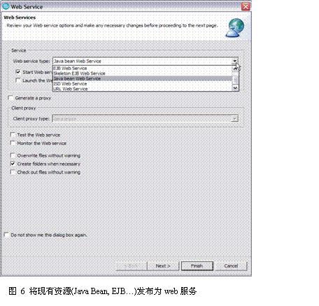 当我们想将现有的资源,如Java Bean或者EJB作为web服务进行发布时,RSA中提供相应的支持,如图6所示: