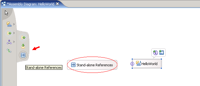 然后把Standalone Reference端点与HelloWorld组件连接起来。工具自动会为Standalone