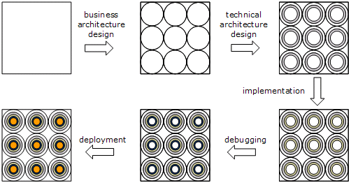 请注意,在这种方法中,不存在已完成的企业体系结构这样的概念。相反,企业体系结构被视为是指导如何利用技术的一组有活力的文档。它更像是一份城市规划而不是一张建筑设计图。