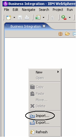 Business Integration 视图内单击右键,然后选择 Import,如图 8 所示。