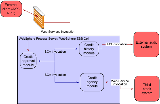 JMS 审核消息,并从 Credit Agency Module 调用外部的 Credit Score Agency: