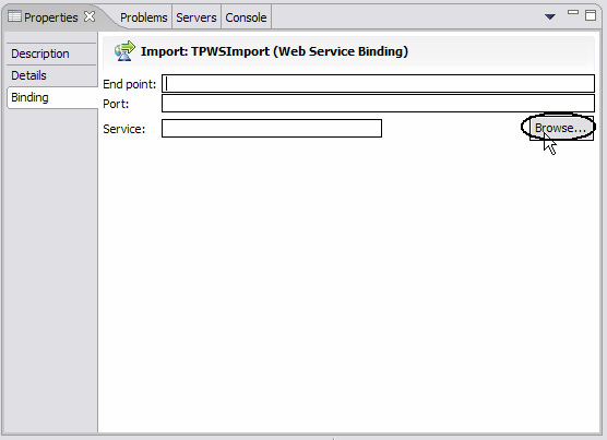 绑定。IBM WebSphere Integration Developer 提供了 Properties 视图,在此视图中,您可以查看和更改绑定值。这是您随后提供必要