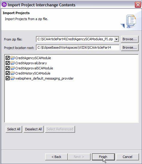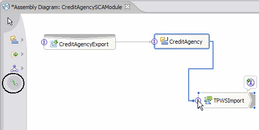 - 打开时,请注意,CreditApproval 模块与两个 SCA 导入相连。