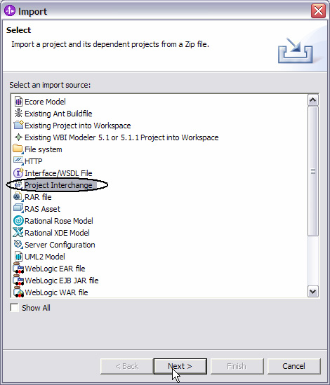 - 从向导选择 Project Interchange,并按 Next(图 7)。