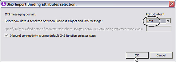 对于 JMS 导入,调用 SCA 接口将转换为将请求消息写入指定 JMS 目的地,并且,如果需要应答,还可以从应答队列读取(可选)。WebSphere