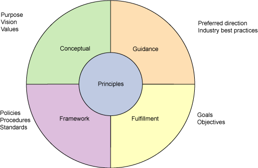 原则基于行业最佳实践,反映通过策略、过程和标准实现的企业目的、远景和价值。