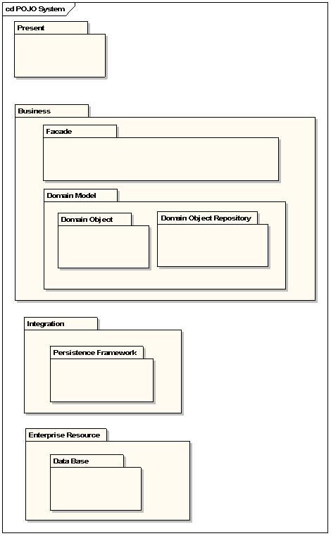 可以看到业务对象和仓库对象都被映射至业务层,而持久化框架被映射到了整合层。
