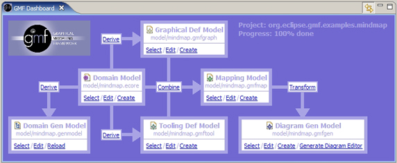 GMF 应用程序的开发过程中有一组用作示例的很好转换。GMF 仪表板(Eclipse 视图)甚至提供了转换步骤、构件及其关系的可视化表示形式。