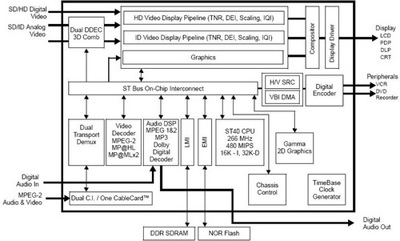 图2 机顶盒单芯片iDTV处理器硬件架构方块图(以STD2000为例)