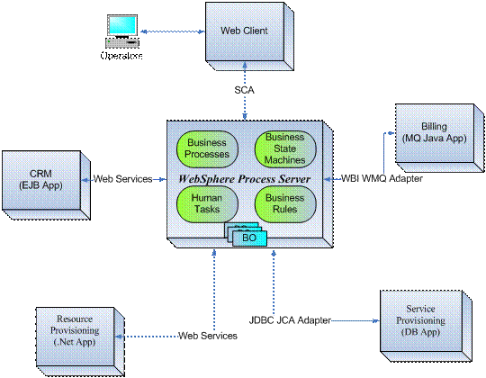 V6) 实现电信行业的典型业务场景,集成了多个异构的业务系统,提供了一系列完整的端到端的业务流程,展现了WID和WPS进行应用集成(Application