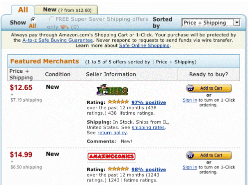 Amazon.com 搜索某件玩具时,搜索结果是如图 2 所示的一组匹配项。在这个例子中,系统按一种特殊的缺省排序方法(如按价格和运输成本)显示搜索结果,但用户也可以按照其他属性(如只按价格)重新对显示的内容排序。