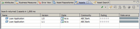 Process Execution Language (BPEL) 类型的资产,也会在搜索结果中看到它们。