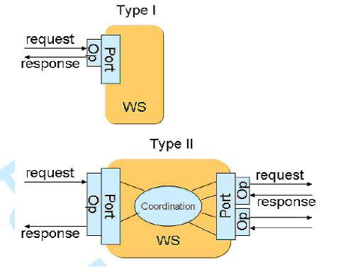 I所表示的信息服务,只支持内置的操作,这类服务的处理过程包括等待请求信息、处理请求、返回请求Type II所示的复杂服务,实现了内置操作和外部操作的某种协调,通常是有状态的。