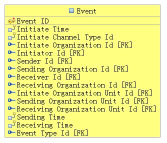 EVENT 代表了业务事件,其基本要素要求有时间,人员,事件类型,可以得出逻辑实体的属性如下图: