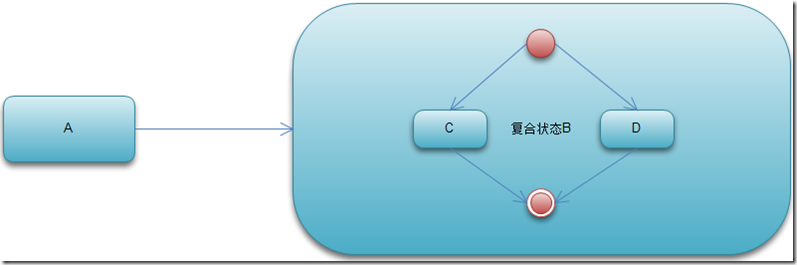 组合状态B,也即复合状态B,内部可能有比较复杂的状态(C-D状态)。这种只是组合状态B中存在单个状态变化流程的情况,还可能组合状态B中包含更多的状态流。
