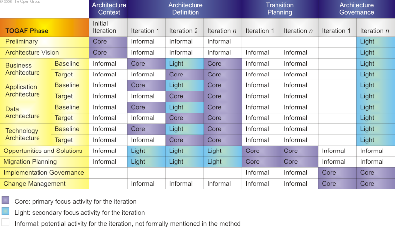 推荐组织在引入 TOGAF 之前先适应几个技术、标记,和 SDLC 方法,如图所示:会UML会更容易使用ArchiMate,会迭代开发更容易适应架构的迭代开发,经历过完整的产品开发会更快适应架构开发。