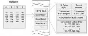 Hadoop平台上的OLAP分析,同样存在这个问题,Facebook针对Hive开发的RCFile数据格式,就是采用了上述的一些优化技术,从而达到了较好的数据分析性能。如图2所示。
