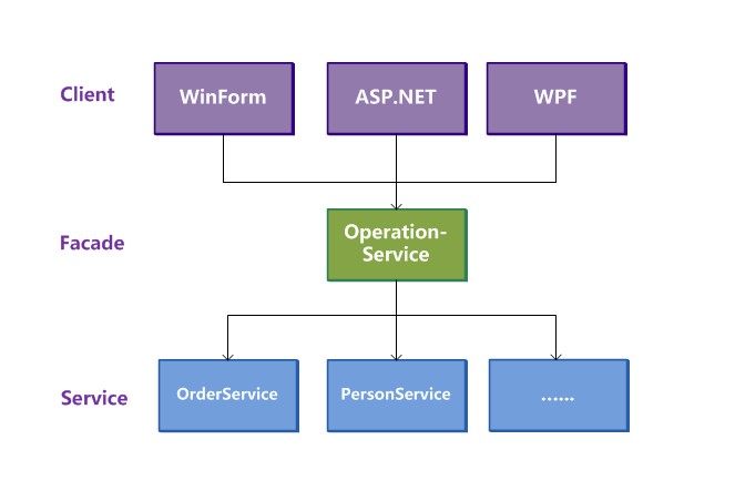 在开发SOA系统的时候,应用层的服务需要使用远程方法对外开放,在接收到请求的时候,它可以调用领域层服务获取运算结果,然后通过数据转换器OperationAssembler把运算结果转换成DTO,最后返还到表现层。在起初,我曾尝试对应每个应用层的对象建立一个远程接口,但经过多次重构以后,我觉得行程对象就是一个简单的对外接口,对象之间不存在什么逻辑关系。所以更简单的方法是使用外观模式,建立少数的几个远程服务类,把所有的应用层对象的方法都包含在内。