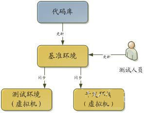 测试方面,为了支持快速迭代,必须提高自动化程度。而影响自动化的首要因素就是环境自动构建,常见的问题有:环境复杂,比如关联关系复杂;环境搭建代价过大;环境功能不完整等。采用基准环境能解决这一问题,项目上线后自动从 scmpf 更新到基准环境;测试环境/开发环境从基准环境同步。基于基准环境,系统级别的持续集成也成为可能,同时可以集中大量测试工具。