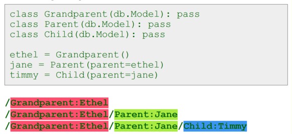 Entity是Ethel,所以最后timmy的Entity Key是"/Grandparent:Ethel/Parent:Jane/Child:Timmy"。