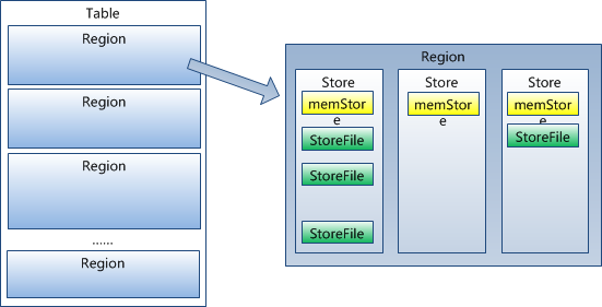 事实上,HRegion由一个或者多个Store组成,每个store保存一个columns