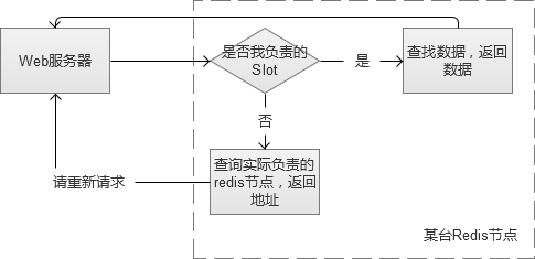 Redis cluster集群内的Redis互为多组主从,同时每个节点都可以接受请求,在拓展集群的时候比较方便。客户端可以向任意一个节点发送请求,如果是它的“负责”的内容,则直接返回内容。否则,查找实际负责Redis节点,然后将地址告知客户端,客户端重新请求。