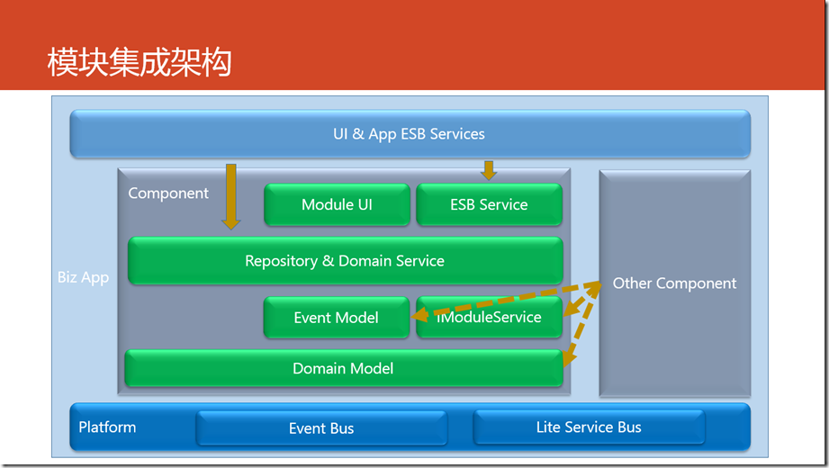 2.组件内部以领域驱动的模式开发,以领域实体框架作为基础框架。组件内、组件间,也都是面向领域实体来进行交互。