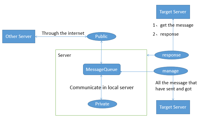 息队列是和网络相关联的,所以根据网络的不同划分为公共队列、专用队列,其中公共队列是公布到整个网络中,在整个网络中所有站点公开,相对的就是专用队列,专用队列只能由知道队列完整路径名或标签的应用程序访问。另外根据接收消息的操作不同把消息队列划分为管理队列和响应队列,管理队列是指在整个消息线路中所有已经发送和接收的消息;响应队列是指目标程序接收和回应消息。它们在消息队列中的类型,可以使用下图来进行区分。