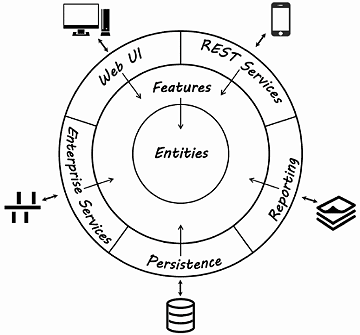 Cockburn几年前就建议,以同心圆方式分解比层叠方式更自然。使用这种分解方式的架构模型最近引起了人们的注意,并达到了有望成为新标准的程度。