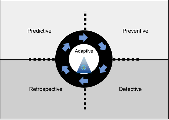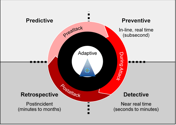 图1:自适应防御系统的四个阶段(预测->防御->监控->回溯)