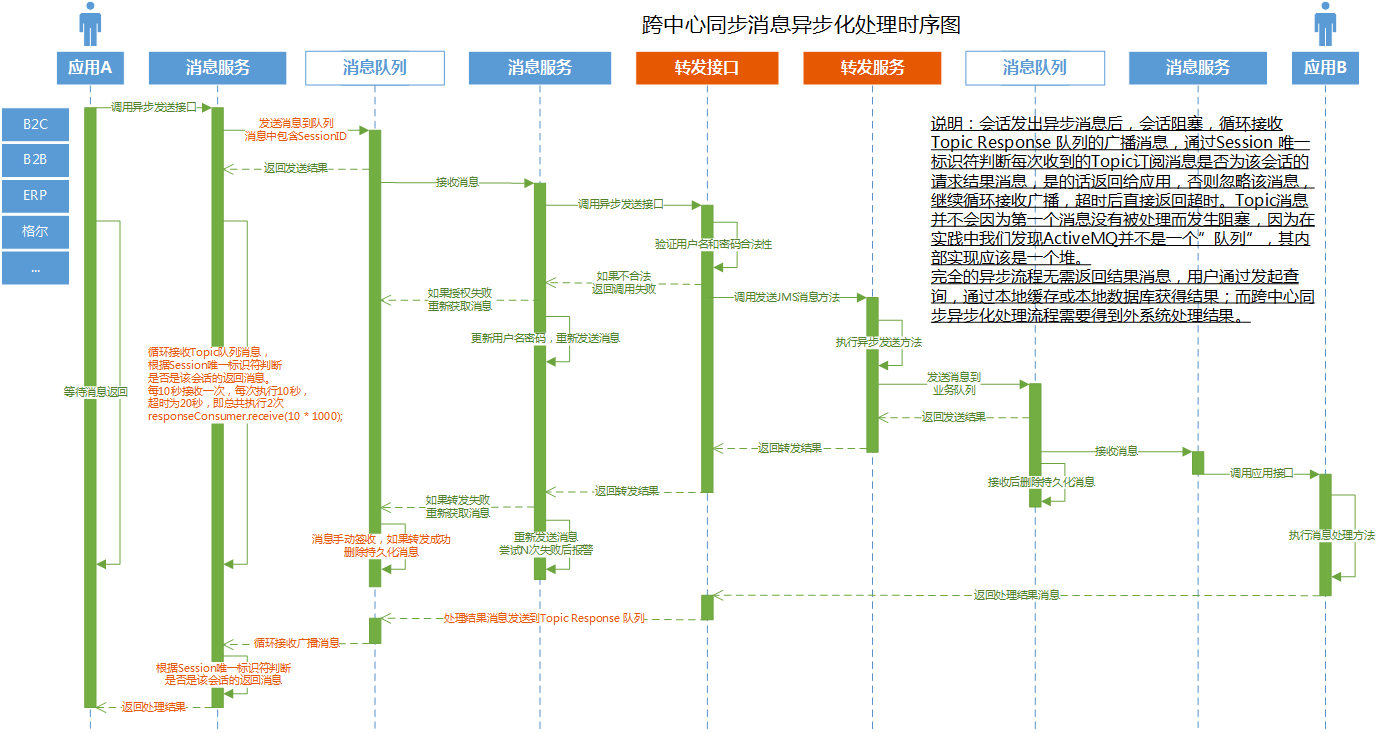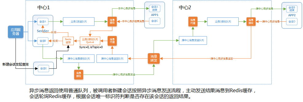 完全的异步流程无需返回结果消息,用户通过发起查询,通过本地缓存或本地数据库获得结果;而跨中心同步异步化处理流程需要得到外系统处理结果。