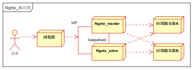 Ngnix高可用,至少包含两个Ngnix服务器,一台主服务器,一台备服务器,之间使用Keepalived做健康监控和故障检测。开放VIP端口,通过防火墙进行外部映射。